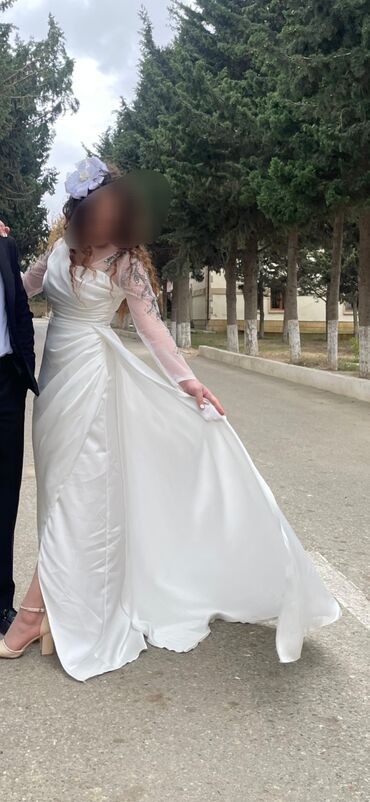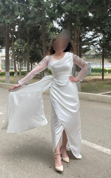 Ağ rəngli zərif ziyafət/gelinlik stili libas - Model: asimmetrik, bir