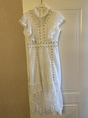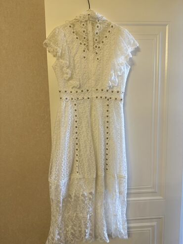 Güpür naxışlı, ağ rəngdə qadın donu. Cəmi 1dəfə 3saatlıq geyinilib, tərtəmizdir.Qısa qol dizaynına və asimmetrik ətəyə malikdir. Dizdən aşağı ətək hissəsi ilə axşam tədbirləri üçün uyğundur. Bu don...