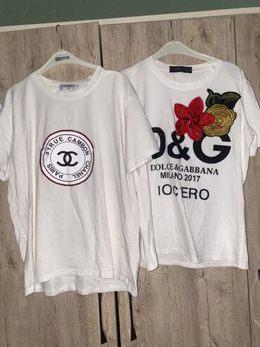 Hər ikisi gündəlik geyim üçün uyğundur, cins və şortlarla asan kombinlənir. Minimalist ağ fonda iri loqo/printer motivləri ilə diqqətçəkən görünüş verir.