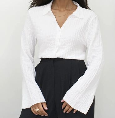 Ağ rəngli qadın köynəyi - Parça: fakturalı/teksturalı (yüngül, hava