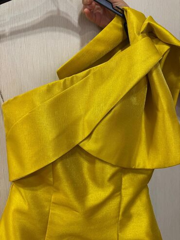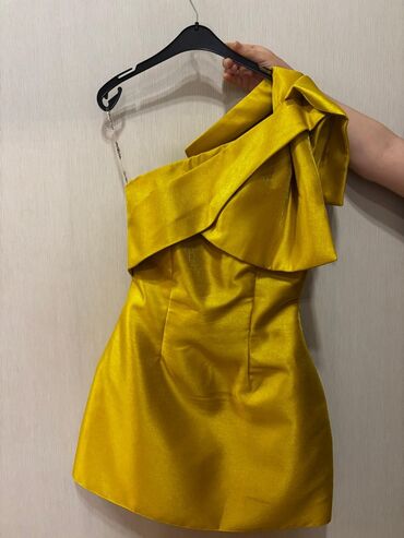 Qızılı-sarı rəngdə, asimmetrik kəsimli kokteyl/ziyafət donu. 1 dəfə