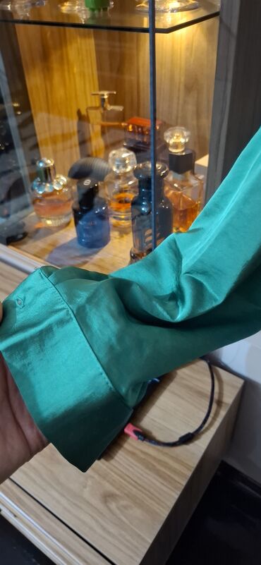 ZARA qadın köynəyi - Rəng: zümrüd yaşılı - Kəsim: klassik yaxalı, gizli düyməli ön bağlanma - Qol: uzun qol, manjetli - Parça: atlas/işıltılı toxuma, hamar və axıcı quruluş - Ölçü: XS (EUR XS / US...