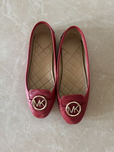 - Ön hissə: Loafer tipli detal və qızılı tonlu “MK” dairəvi metal emblem