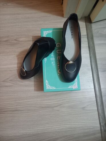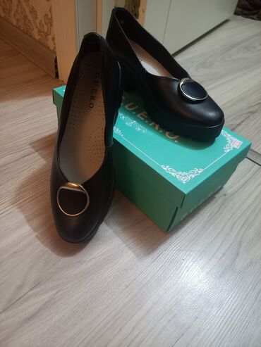Qadın ayaqqabısı – klassik qara rəng, bağlı burunlu, rahat gündəlik/ofis modeli. - Brend: Ercan (qablaşdırmada qeyd olunub) - Stil: balerina/pump tipli - Material: üst hissə hamar sintetik/deri tip...