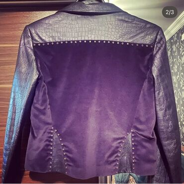 - Material kombinasiyası: ön və arxa hissədə yumşaq məxmər; yaxa, çiyin hissəsi və qollar timsah teksturalı eko‑dəri