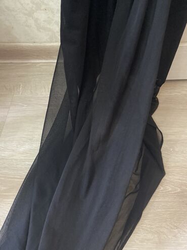 Alinib 350, satilir 250, təzə - Rəng: Dərin qara - Dizayn: V‑kəsimli sinə, bel hissəsində şəffaf tül üzərində gümüşü və qara muncuq/seqin bəzəkləri - Qollar: Həcmli, şifon, rezinli manjetlərlə - Et...
