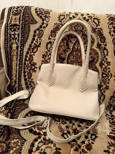 Bej rəngli qadın çantası Material: süni dəri, ölçü: orta boy. Yenidir, işlənməyib.