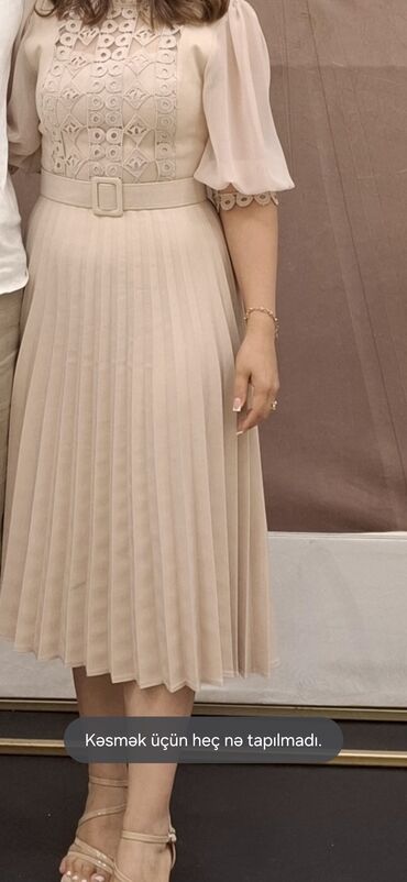- Ətək: Diz-altı uzunluqda, çoxqatlı görünüş verən dərin pliseli.