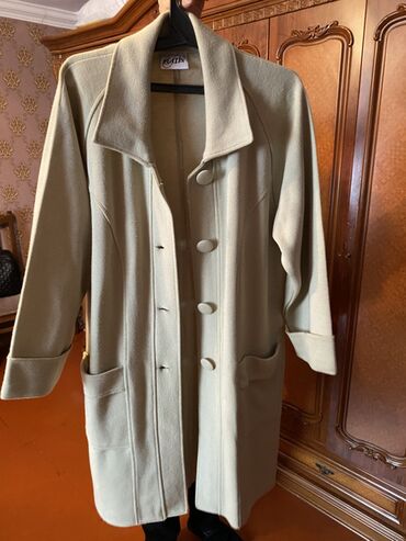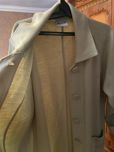 PLATIN markalı bej rəngli qadın pencəyi. Dizə qədər uzunluğu, enli yaxalığı və uzun qolları var. Qol kənarları qatlanmış manjetlidir. Ön hissəsində dörd düymə ilə bağlanır və iki yamaq cibə sahibdir. Rahat və zərif görünüşü ilə gündəlik istifadə üçün uyğundur.