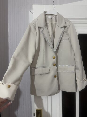 Öz qiymeti 170 AZN alınıb. Satılır 60 AZN!! Ağ rəngli qadın pencəyi - Model: uzun kəsim, klassik açılan yaxa (laylapel), ön tərəfdə düyməli bağlanma (3 düymə). - Qol: 3/4 uzunluq effektli düz qoll...