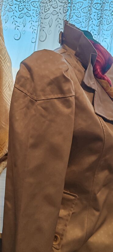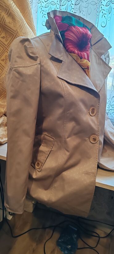 Bej rəngli qadın trençkot 1defe geyinilib yeniden secilmir ela veziyetdedi - Klassik dizayn: dizaynda ikisıralı görünüşlü qapaqlı düymələr, geniş düşən yaxa və çiyin epoleyləri. - Kəmər: eyni parça...