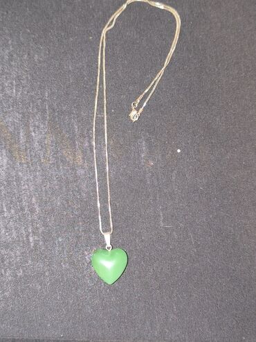 - Boyunbağı: Zərif metal zəncir və ürək formalı yaşıl daş asqı. Sadə və elegant dizayn, gündəlikdən klassik geyimə uyğun.