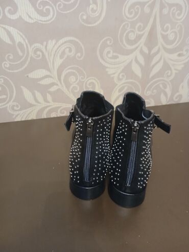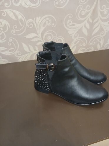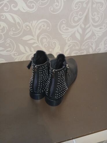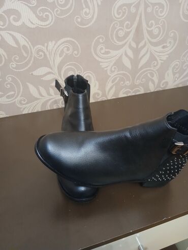 Qadın qısa çəkmələri - Rəng: qara - Model: bilekyanı bot - Material