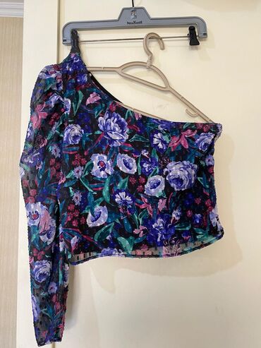 Yeni Pull&Bear qadın penceyi.Razmer S.M ve L e de gedir - Model: Uzunqol, açıq yaxalı, ön hissəsi düyməli, yüngül və axıcı kəsim - Naxış: Dalğavari qrafik print – qara fon üzərində mavi, çəhrayı v...