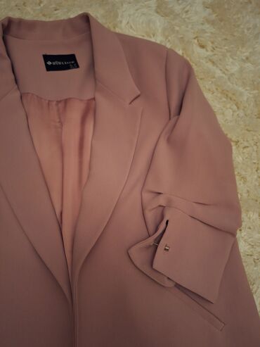 Məhsul: Qadın üçün açıq çəhrayı bleizer/jaket - Rəng: Pastel açıq çəhrayı - Dizayn: Düz kəsim, birrəng; klassik haşiyəli yaxalıq (revers); ön hissədə düyməsiz - Ciblər: Ön tərəfdə iki geniş kvadra...