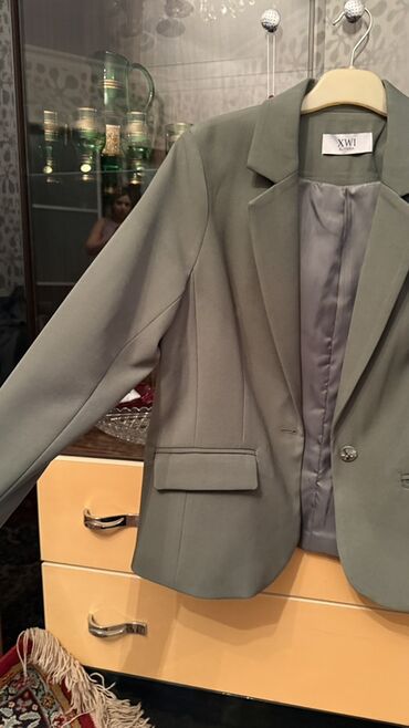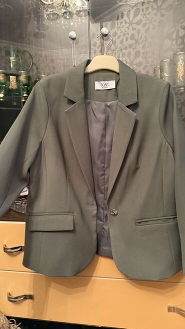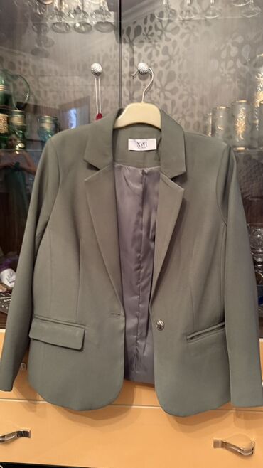 70 manata alinib 50 manata satilir hec geyinilmiyib balaca razmer zakaz olunub deye Qadın üçün yaşıl rəngli klassik bleizer - Model: İkiqat düyməli bleizer - Rəng: Zərif yaşıl - Ölçü: 38 (etiketd...