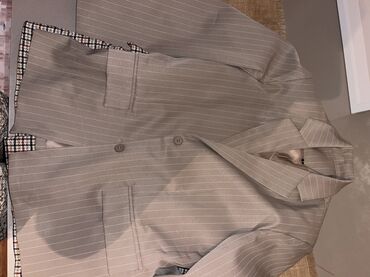 Zolaqlı klassik qadın pencəyi - Rəng: tünd boz üzərində incə ağ şaquli zolaqlar - Model: bir düyməli, klassik yaxa (notch lapel) - Astarlı içlik, rahat oturuş - İki ədəd qapaqlı yan cib, bir gizli...
