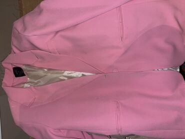 Məhsul: Qadın üçün açıq çəhrayı bleizer/jaket - Rəng: Pastel açıq çəhrayı - Dizayn: Düz kəsim, birrəng; klassik haşiyəli yaxalıq (revers); ön hissədə düyməsiz - Ciblər: Ön tərəfdə iki geniş kvadra...