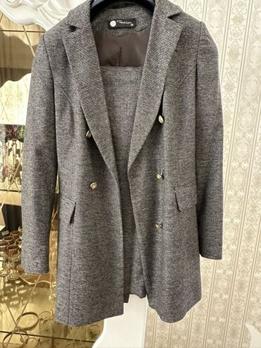 Qadın kostyum - Brend: Fashion (etiketdə göstərilib) - Ölçü: 36 - Dizayn: İkiqat düyməli, klassik uzun kəsim - Naxış: Boz tonlarda xırda xallı/çəkməli və xətlərdən ibarət dama naxışı - Detallar: Dö...
