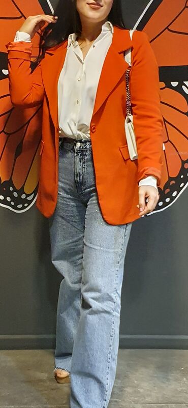 Narıncı rəngdə, 3/4 qollu, yaxası açıq, zərif qadın pencəyi. Ofisdə və ya xüsusi tədbirlərdə istifadə üçün uyğundur. 2-3defe geyinilib,yeni sayilir
