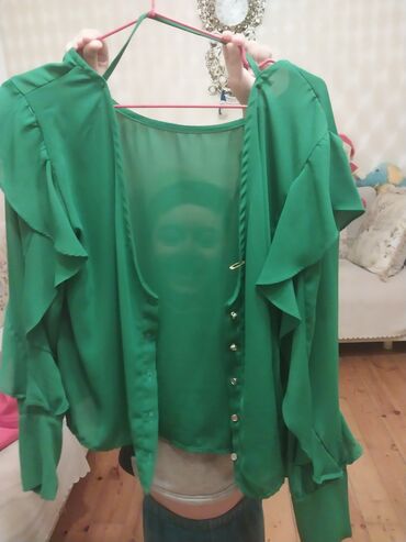 Uyğunlaşdırması asan, gündəlik və ya şıq kombinlər üçün. Rənglər: qara və tünd göy tonları. Ölçü etiketləri şəkillərdə görünən kimidir. Materiallar: məxmər, trikotaj və yüngül tor-şifon (bluzlar); nazik tekstura parçalı pambıq/qarışıq material (köynək). Hecbirinin deffeqti yoxdu ayriliqda o qiymetdi hamsi birlikde deyil cox alana endirim edilecek