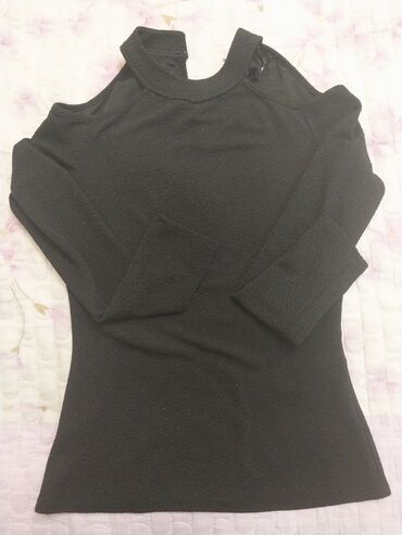 3) Qara trikotaj, “cold-shoulder” (açıq çiyin) kəsimli, uzun qollu.