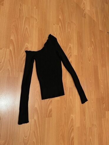 Qara rəngli, bir çiyin açıq dizayna malik, uzunqol trikotaj bluz.