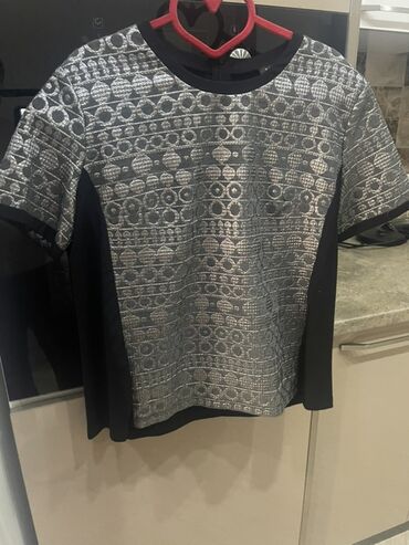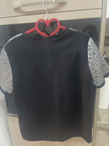 - Dizayn: Ön hissədə parıltılı/metal effekti verən toxumalı ornamentlər; qolların ucları və yan hissələr kontrast qara parçadan