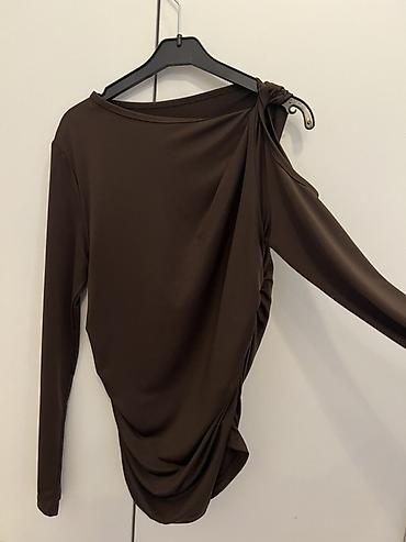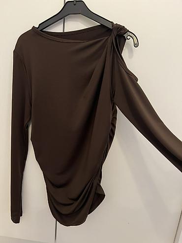 Qadın bluz/kofta - Rəng: tünd qəhvəyi - Dizayn: asimmetrik çiyin