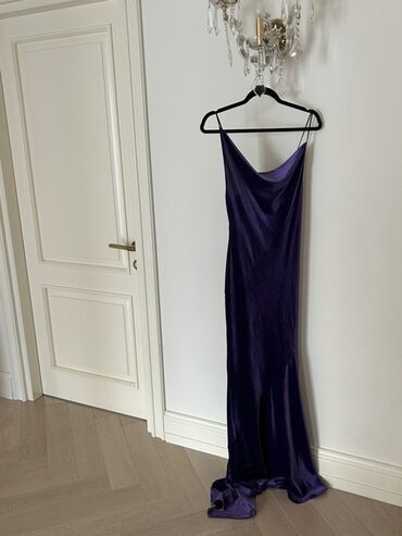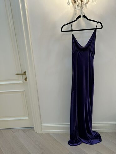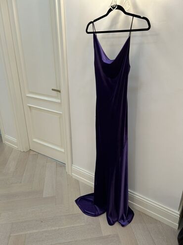 Bənövşəyi rəngdə, uzun, zərif slip tərzli gecə/libas paltarı.