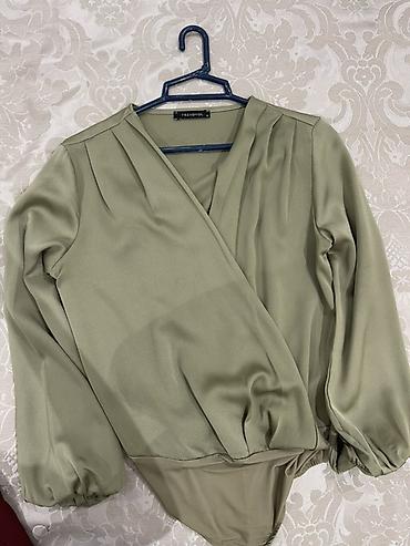 Tünd yaşıl rəngdə qadın bodi bluz - Brend: Trendyol - Model: dərin V