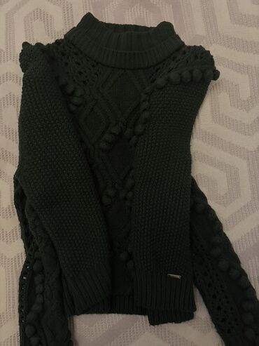 Qadın sviteri – qırmızı - Rəng: parlaq qırmızı - Model: V-oyun yaka - Qol: qısa - Dizayn: çiyin hissələrində dəbdəbəli krujeva/haşiyə detalları - Aşağı hissə: geniş elastik rezinli bel kənarı - Pa...