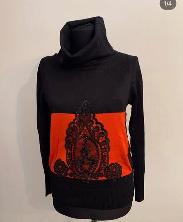 Qadın sviteri – qara və narıncı bloklu dizayn