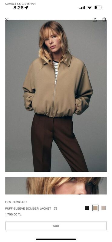 - Dizayn: Şişkin qol detallı bomber kəsim, klassik çevrilə bilən yaxalıq