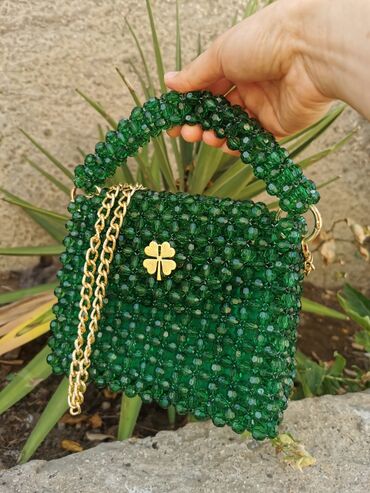 Məhsul: Əl işi muncuq çantalar - Dizayn: Tamamilə əl ilə yığılmış muncuq naxışlı çantalar. Fərqli formalar – kvadrat, ürəkvari, dairəvi və klassik tote. - Materiallar: Parlaq akril/kristal effektl...