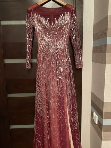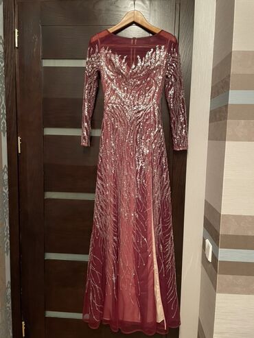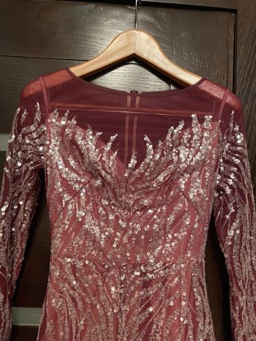 1 defe geyinilib 1000 azn alinib.Xs ve S razmer.Bordo rəngdə, parıltılı payetlərlə bəzədilmiş uzun ziyafət/libas.