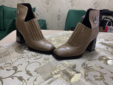 - Dizayn: kvadrat burun, ön hissədə dekorativ şaquli zolaqlar, yanlarda metal tokalı kəsik detal