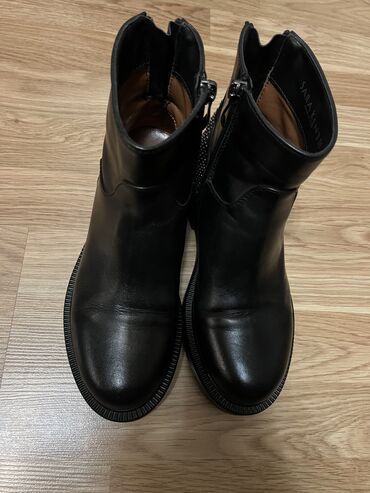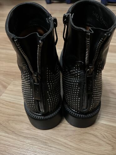 Qadınlar üçün dəbli qısa çəkmələr - Material: yumşaq nubuk , brend Sandro Vicari italiya - Rəng: tünd boz-bənövşəyi ton - Dizayn: ön hissədə geniş laklı dəri qayış və iri metal toka; tokada dekora...