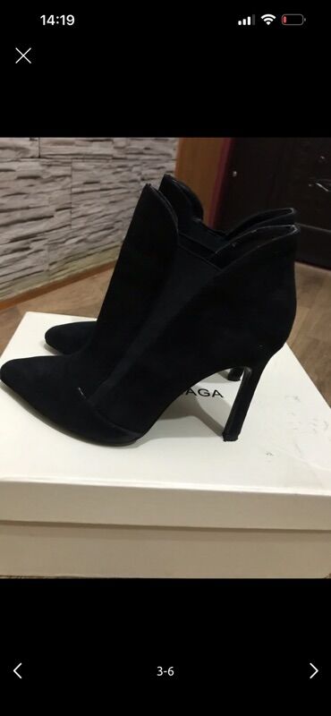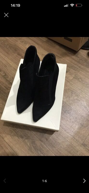 Qadınlar üçün qara dəri qısa çəkmə (ankle boot) - Klassik, sivri burun dizaynı - Orta hündürlüyə yaxın nazik daban (təxminən 7–9 sm) - Elastik yan panellər – geyinib-çıxarmağı asanlaşdırır və ayağ...
