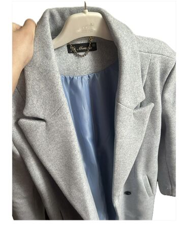 Qadın palto – açıq mavi rəng, klassik uzun model