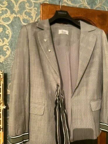 Zərif, idman-klassik xəttli bu dəst həm iş, həm də şənlik geyimi kimi istifadə oluna bilər. Pencəyin və şalvarın zolaqlı elementləri görünüşə dinamika qatır, elastik bel isə rahatlıq təmin edir.