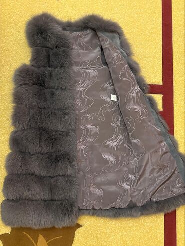 Qadınlar üçün xəz jilet - Model: qalın, zolaqlı teksturaya malik xəz jilet - Rəng: tünd boz/qrafit - Dizayn: yaxası yuvarlaq, qolsuz, ön hissə boyunca üfüqi, həcmli xəz panellər - Uzunluq: orta/uz...