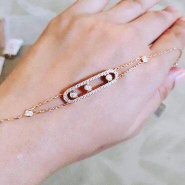YeniZərif çəhrayı qızıl suyuna salınmış bu qolbaq oval formalı mərkəzi hissəyə malikdir. Bu hissənin daxili tərəfində üç kiçik, xarici kənarlarında isə daha çox sayda parıldayan brilliant daşlar yerləşdirilib. Qolbağın nazik zənciri ikiqat dizayna malikdir və biləyə rahat uyğunlaşması üçün tənzimlənə bilən bağlayıcıya sahibdir. Bu qolbaq gündəlik istifadə üçün uyğundur.