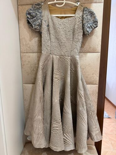 Zərif gümüşü rəngdə, qısaqol, bəzəkli üst hissəsi və piləli ətəyi olan