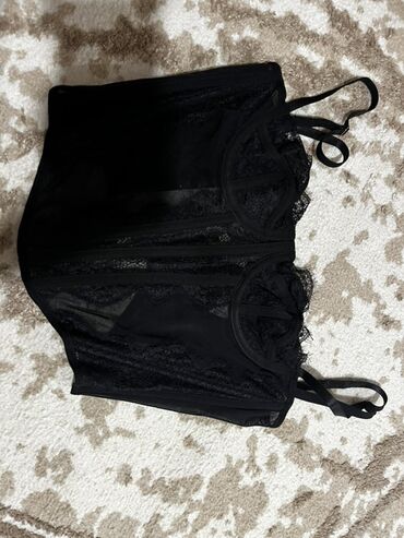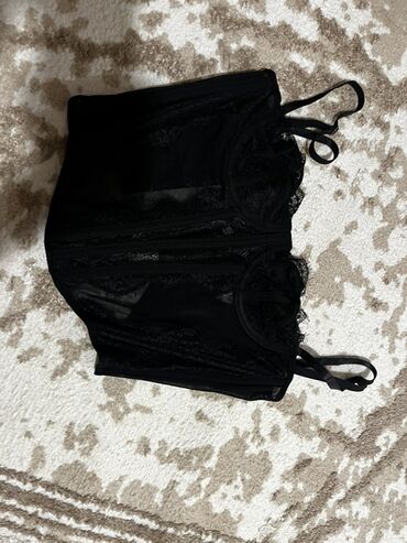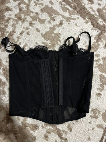 Qara korset – iki ədəd - Model: kəmərli/bağlamalı korset - Rəng: qara, mat parıltılı - Material: sıx toxumalı parça, atlasvari örtük - Dizayn: ön hissədə kruçe (bağcığa keçirilmiş metal halqalar),...