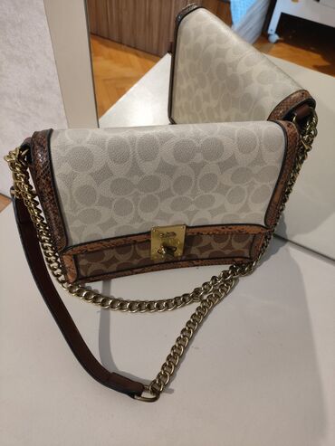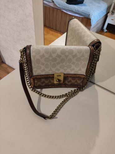 - Rəng: krem və qəhvəyi tonlarda monoqram çapı, qızılı zəncir