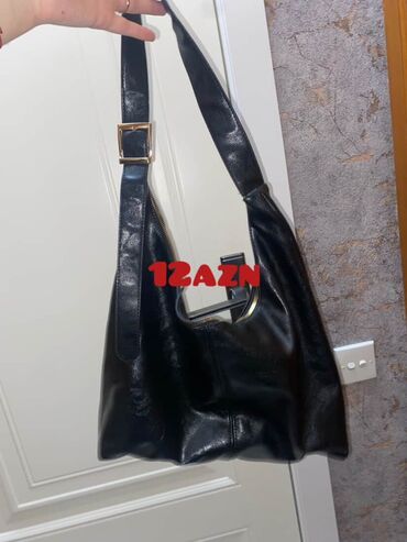 Məhsul: Qadın əl çantası – ZARA - Rəng: qara - Dizayn: sərt formalı, üst hissədə qızılı metal dekor və mərkəzdə qara daş akssent - Brend loqosu: ön hissədə “ZARA” qızılı yazı - Tutacaqlar: iki əd...