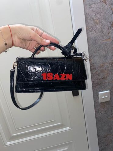 4) Qara lak krokodil effektli mini çanta – 14AZN
