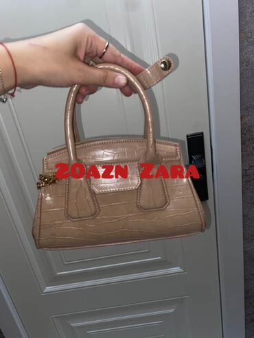 Bej rəngli qadın əl çantası – kroko fakturalı - Brend işarəsi: ZARA (ön hissədə metal loqo) - Material: süni dəri, parlaq kroko teksturası - Rəng: açıq bej/kreminvari - Bağlanma: üst hissədə iri f...
