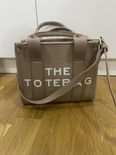 Bej rəngli, dəri teksturalı, kiçik ölçülü "The Tote Bag" çantası. Üst hissəsində iki qısa tutacağı var. Çiyindən asmaq üçün uzun, tənzimlənən qayışı mövcuddur. Gündəlik istifadə üçün əlverişlidir.